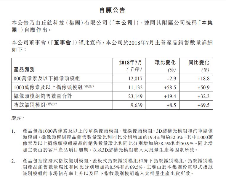 ƾ֤ͨ¸æÄÚÈÝÏÔʾ£¬£¬£¬£¬£¬£¬£¬7Ô·ݣ¬£¬£¬£¬£¬£¬£¬ÇðîѿƼ¼ÉãÏñÍ·Ä£×éÏúÁ¿´ï23.15KK£¬£¬£¬£¬£¬£¬£¬Í¬±ÈÔöÌí32.3%£¬£¬£¬£¬£¬£¬£¬ÆäÖÐ8MÏñËØ¼°ÒÔÏÂÉãÏñÍ·Ä£×é³ö»õÁ¿Îª12.02KK£¬£¬£¬£¬£¬£¬£¬Í¬±ÈÔöÌí18.8%£»£»£»£»£»10M¼°ÒÔÉÏÉãÏñÍ·Ä£×é³ö»õÁ¿Îª11.13KK£¬£¬£¬£¬£¬£¬£¬Í¬±È´óÔö50.9%¡£¡£¡£¡£¡£¡£